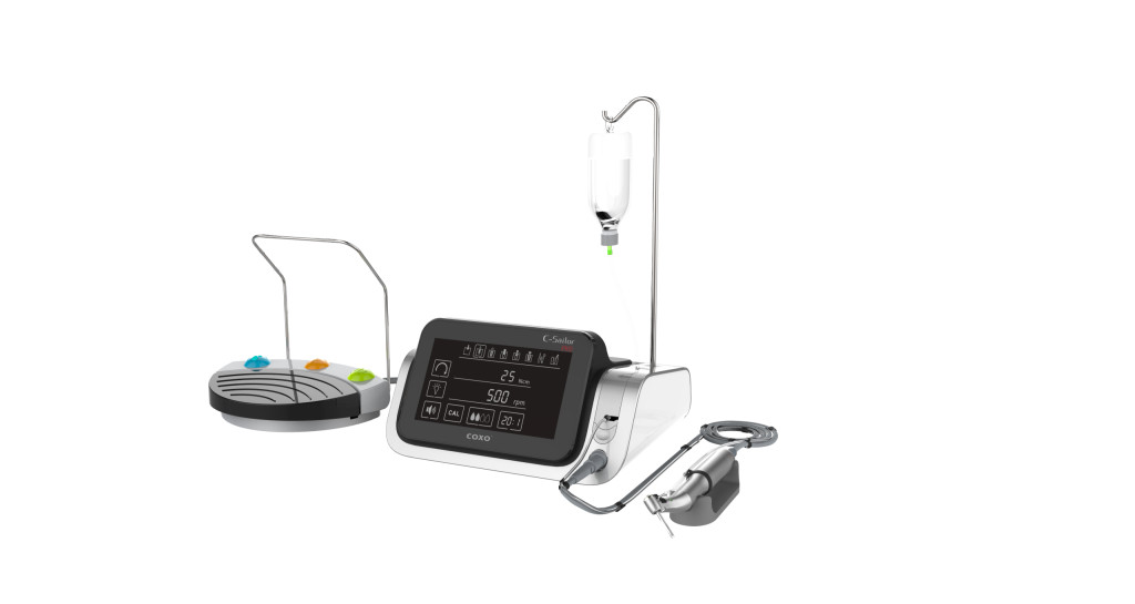 A COXO C-Sailor PRO implantációs rendszer 300-40 000 rpm fordulattal, akár 80 Ncm nyomatékkal, beépített vízellátással (4-állású, akár 150 ml/min) és 30 000 lux LED-világítással – ideális választás implantológiai és sebészeti beavatkozásokhoz.