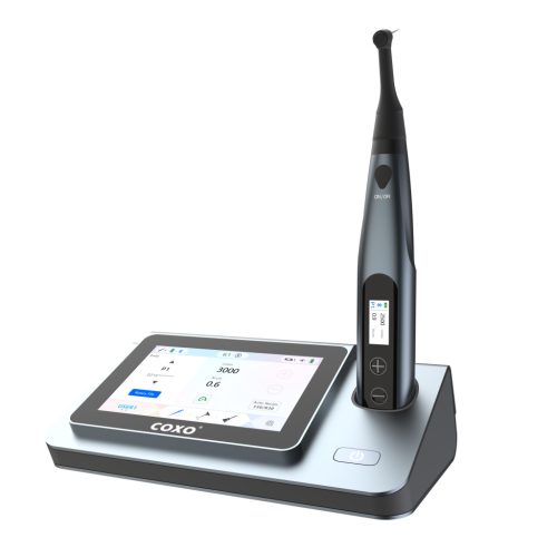 A COXO C-Smart-I PILOT egy innovatív vezeték nélküli endomotor és apexlokátor készülék, amely a 4. generációs technológiát képviseli a modern gyökérkezelésben. A rendszer 150-1000 rpm fordulatszám-tartománnyal és 0,6-3,9 Ncm nyomatékkal dolgozik, így biztosítva a finom és precíz endodontiai beavatkozásokat. A tápellátás AC 100-240 V 50/60Hz, így globálisan kompatibilis. A készülék 5-colos érintőképernyős vezérlővel, stabil Bluetooth-kapcsolattal (akár 10 m), 300°-ban forgatható sterilizálható fejjel és beépített LED-világítással rendelkezik. A felhasználó előre programozott paramétereket használhat több gyártó és 30 endo-tűrendszer számára (200 paraméterrel). A 2600 mAh-ás Li-ion akkumulátor cserélhető és mobil power-bankként is funkcionál. Összességében a C-Smart-I PILOT olyan eszköz, amely a kezelési hatékonyságot és betegkomfortot egyaránt növeli – ideális választás korszerű rendelők számára.